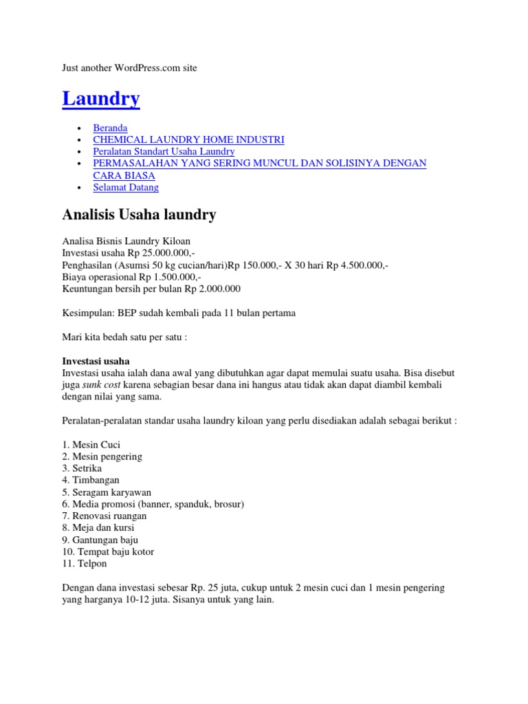 Analisa Modal Usaha Laundry Bisnis Laundry Usaha Laundry