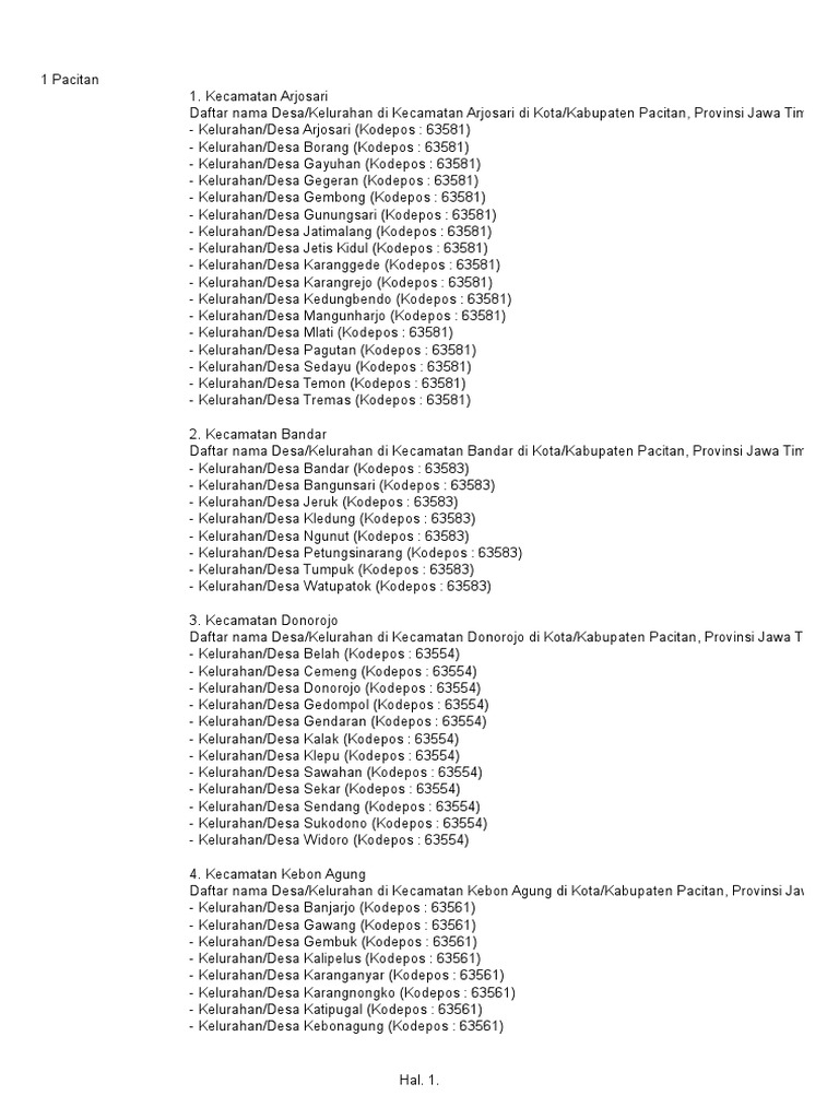 Daftar Kecamatan Kelurahan Dan Kode Pos Se Jawa Timur