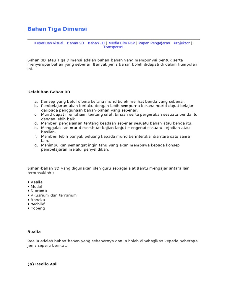 Kerangka Tajuk Penggunaan Bahan 2 Dimensi Dan 3 Dimensi Bahan 2 Dimensi Pengertian