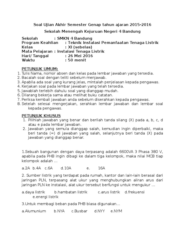 Contoh Soal Ujian Teori Teknik Instalasi Tenaga Listrik Mqej6og8vel5