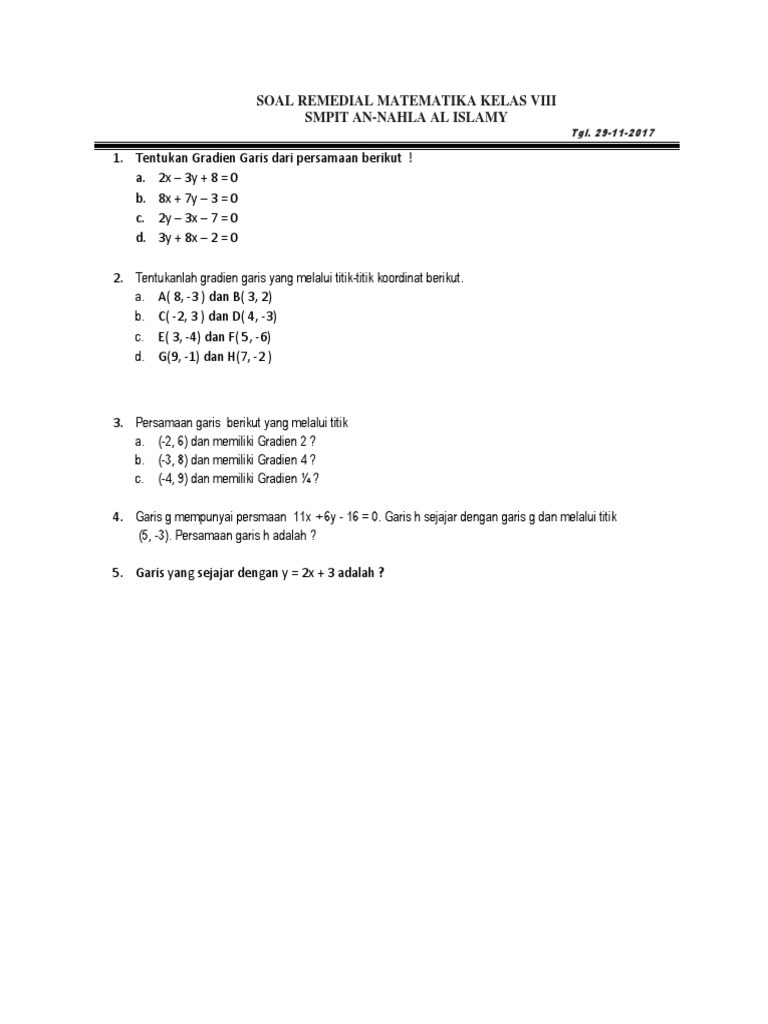 Soal Remedial Matematika Kelas 8