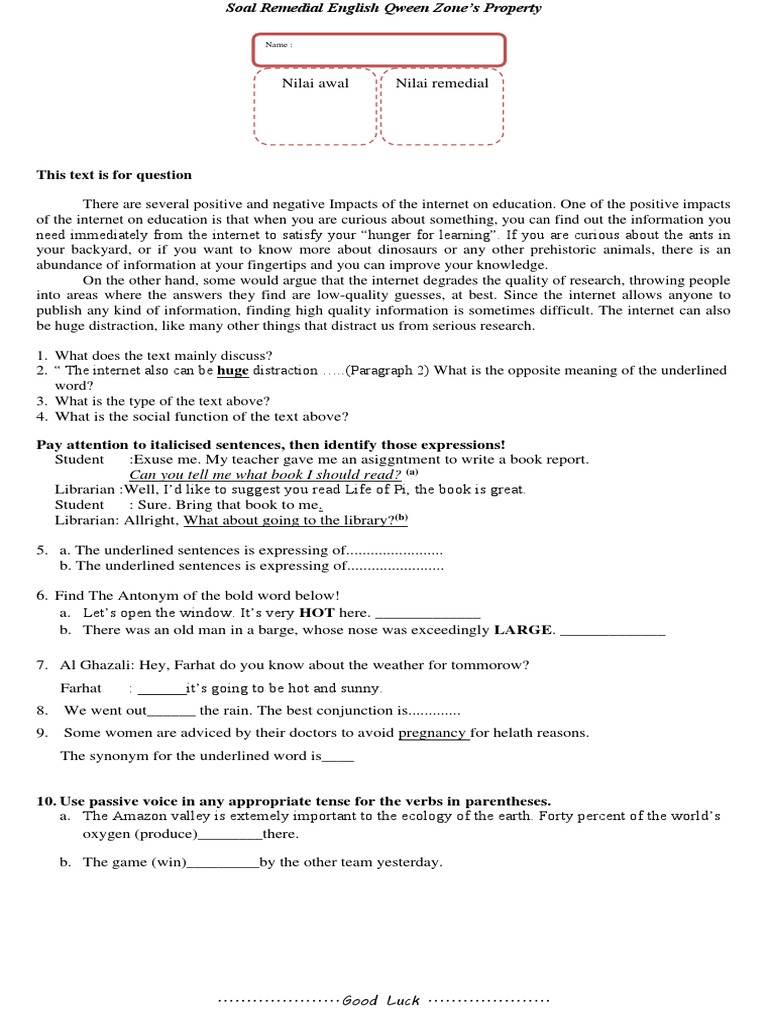 Doc Soal Soal Remedial Tugas Remedial Bahasa Inggris Muhamad Faiq Academia Edu