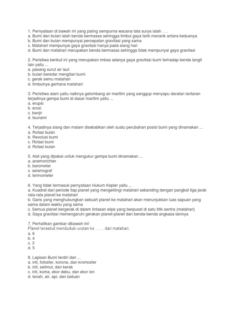 Contoh Soal Ipa Tentang Gempa Bumi Dan Tata Surya