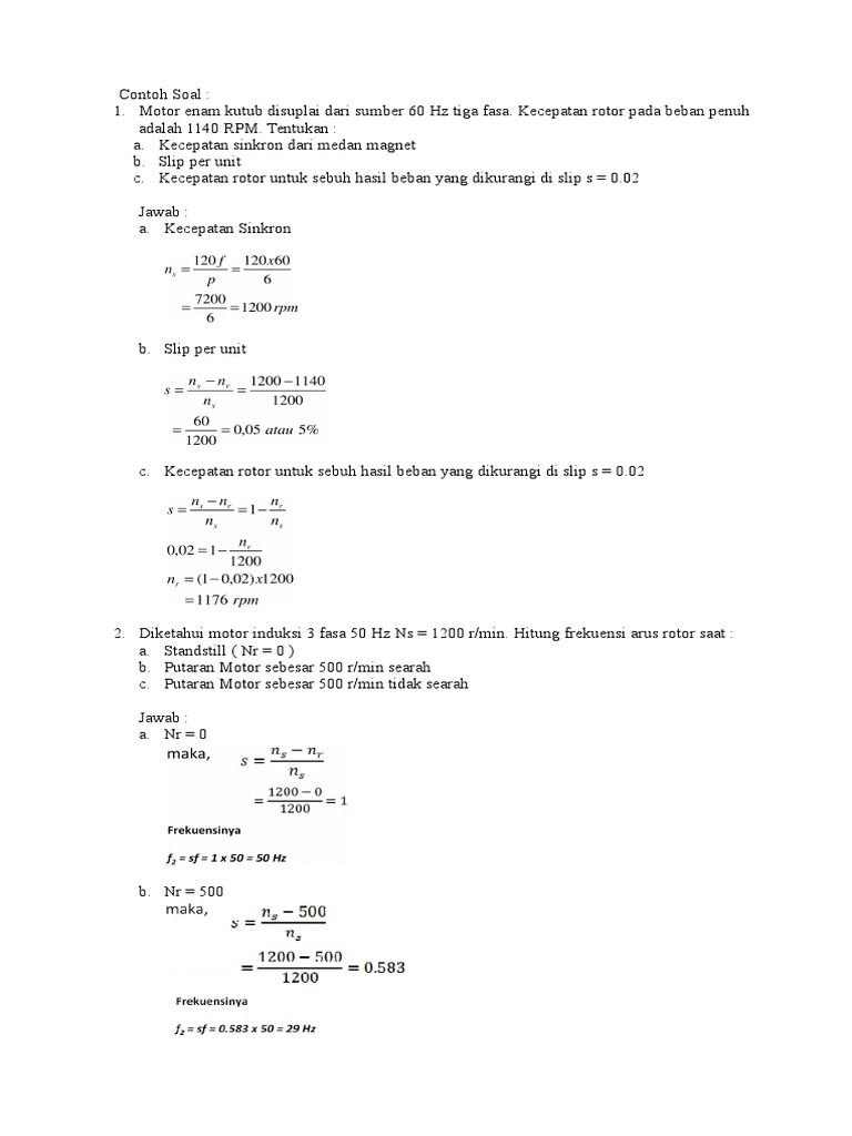 Contoh Soal Dan Jawaban Motor Induksi 3 Fasa Dapatkan Contoh
