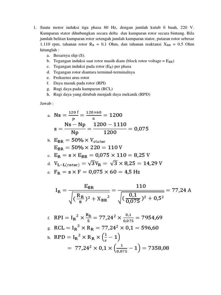 A From s RI Pg 2 2 2 And 2 2 2 RIPP gd we have gd. Contoh Soal Dan Jawaban Motor Induksi 3 Fasa. Soal Motor Induksi 3 Phasa.
