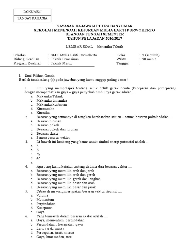 Soal Mekanika Teknik Smk Kls X
