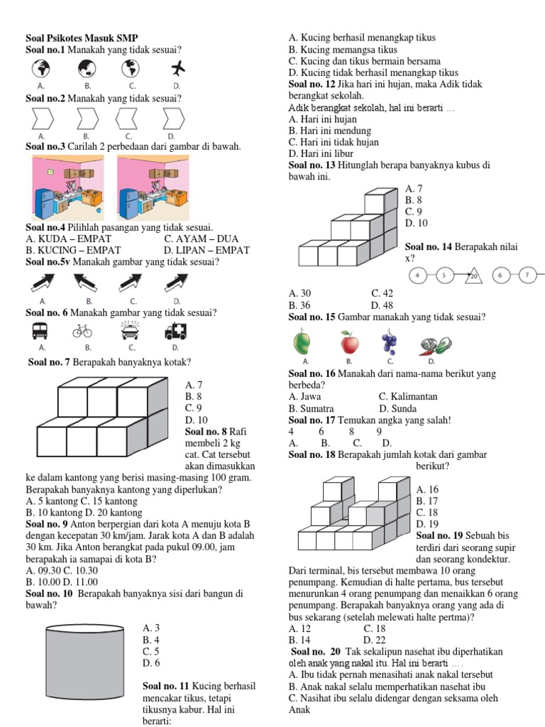 Download contoh soal psikotes 2019 matematika gambar polri bank karayawan deret angka pdf cpns sma online dan jawabannya beserta. Kampus UGM UI dan UNDIP hanya menerima 2000an mahasiswaLebih dari 42000 siswa tidak lulus pada Ujian Mandiri PTN. Download contoh soal psikotes lengkap dan jawabannya.